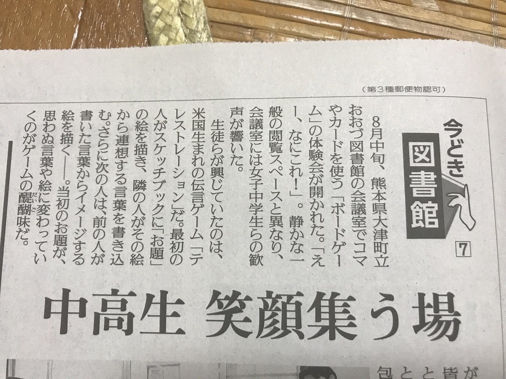 2018年9月14日の読売新聞に、おおづ図書館のボードゲーム企画が取り上げられました。